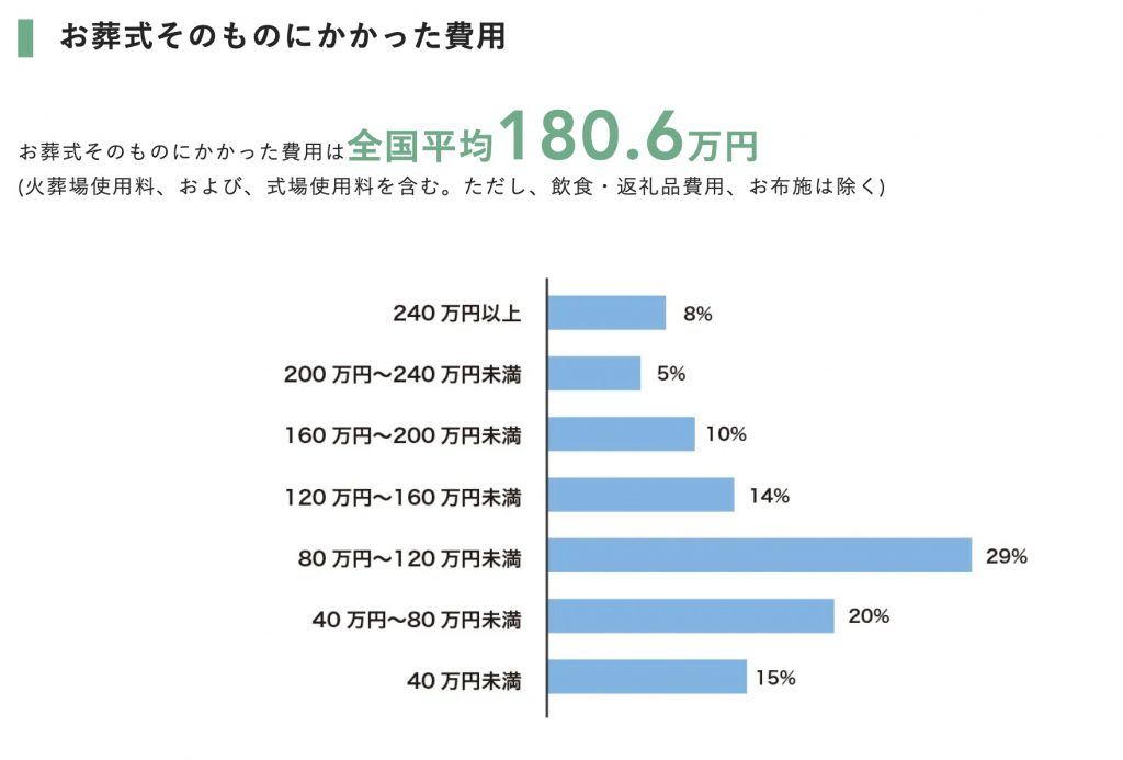葬儀そのものにかかった費用は全国平均180.6万円となっています。