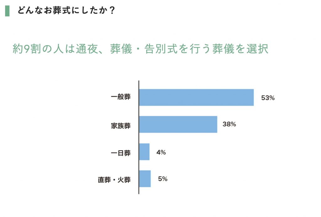また約9割の人は通夜、葬儀・告別式をおこなう葬儀を選択しています。