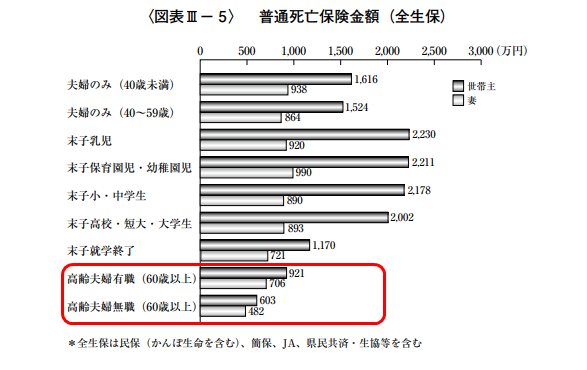 ライフプランによって必要な保障額は変わってきますが、終活を考える年代(60代以降~)の場合、482万円~921万円が平均的な準備金額となっております。