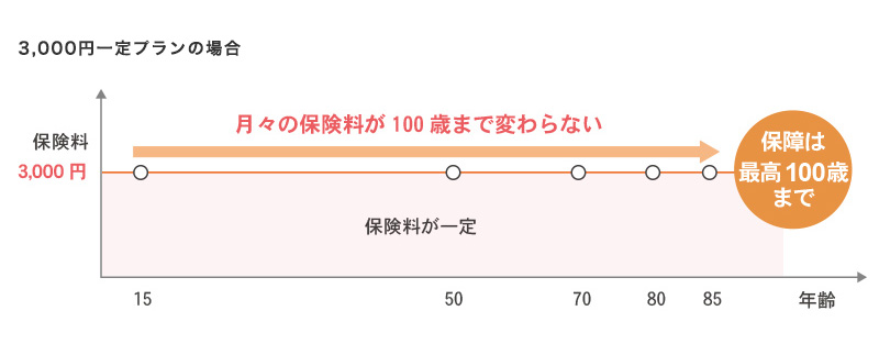 ②月々の保険料は100歳まで一定で変わりません。
