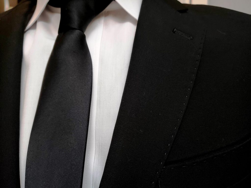 着用する喪服については一般的な葬儀に適している、色合いに深みのあるブラックスーツで問題ありません。