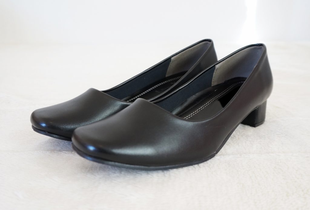 女性の場合は、黒無地のパンプスが理想的です。黒パンプスのなかでも、つま先が丸いプレーントゥまたはつま先が角張っているスクエアトゥを選ぶのがよいでしょう。