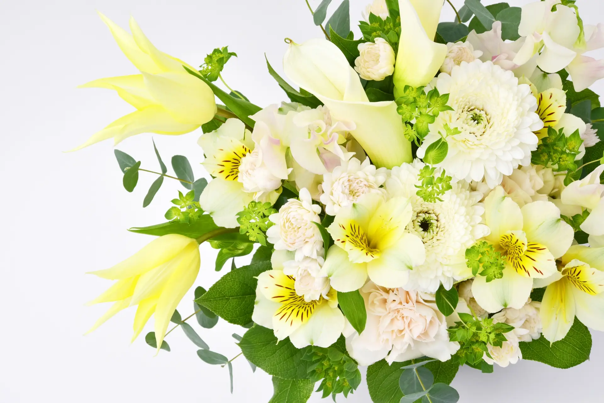 仏教式の葬式で供花として使用できる花の種類は、菊や小菊、蘭、ユリ、カーネーション、水仙などで、白色の生花を使うのが基本です。