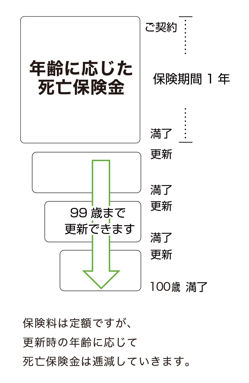 ☑1年ごとの更新で最高100歳まで保障